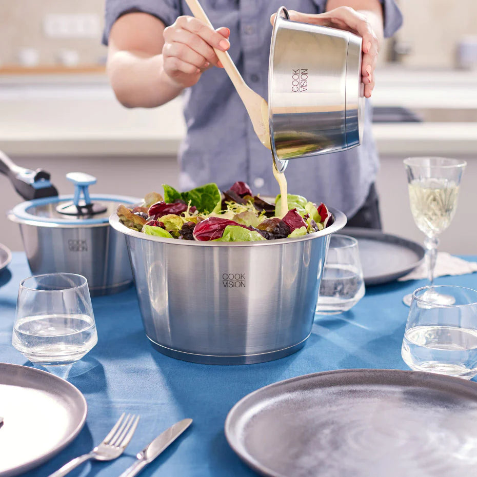 Pannen en potten zonder handgrepen transformeren in elegante blikvangers tot schalen voor salades, groenten en bijgerechten!