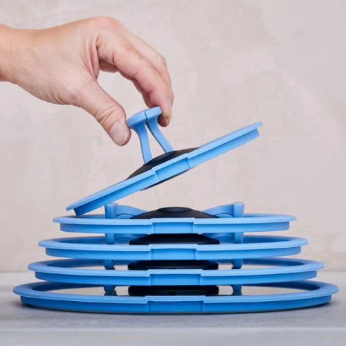 Die Griffe unserer Deckel können zusammengeklappt werden und finden so in jeder Küche Platz.